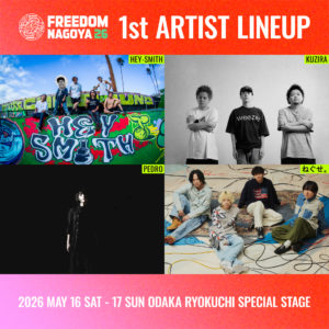 2026.05.16 (sat) 名古屋・大高緑地 特設ステージ “FREEDOM NAGOYA 2026” ※どちらか1日の出演となります。 OPEN --:-- / START 10:00ACTw/ 出演者多数Ticket InformationADV. TBA / DOOR. TBAInformation SHARE: